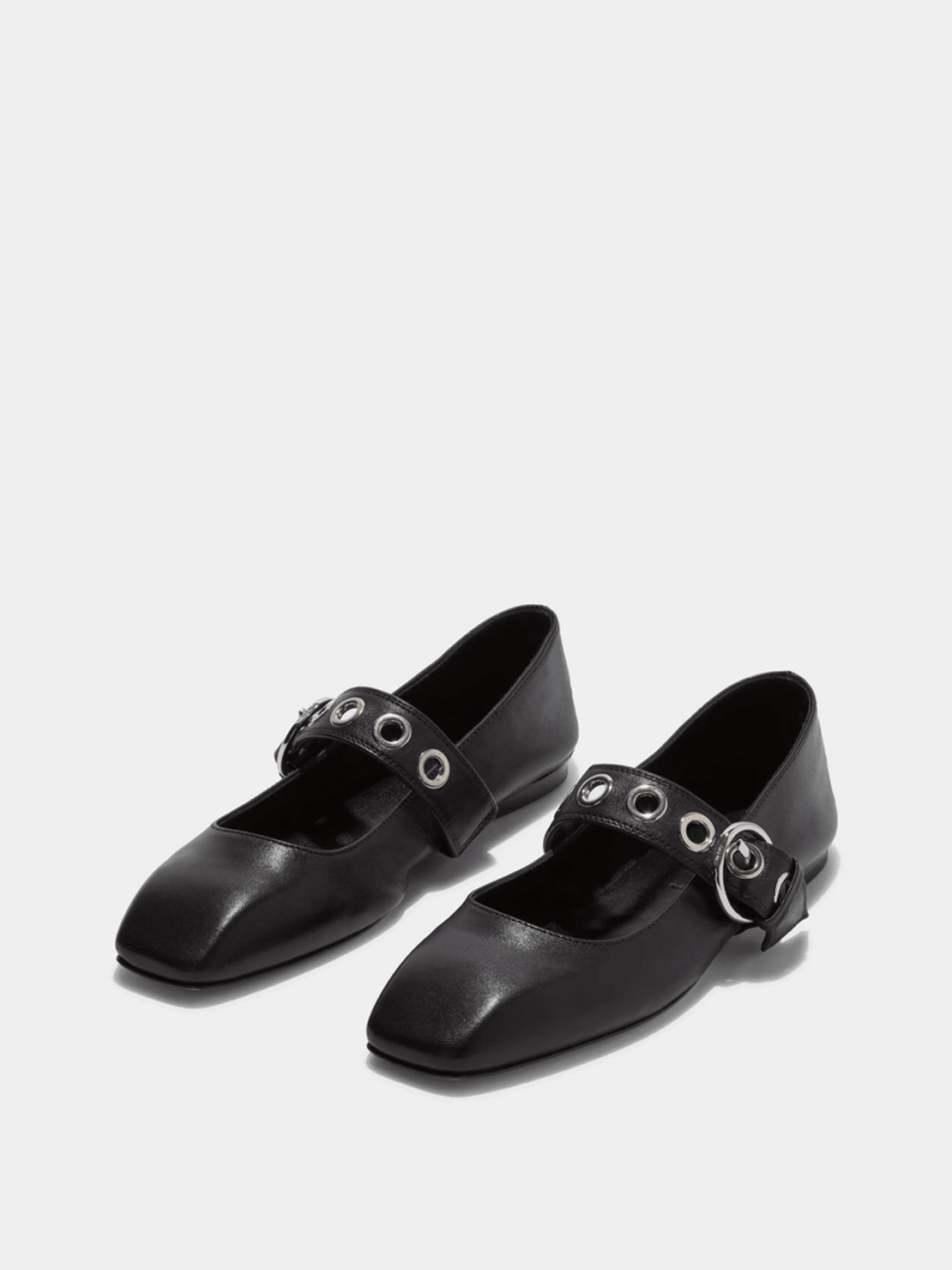 The Aeyde Uma Eyelet Leather Mary-Janes Flats elevate your wardrobe with their unique design and luxurious materials. The timeless ballet flat is reimagined with a wider strap that showcases bold, oversized metal eyelets, adding a contemporary edge to this classic style. Perfect for both casual outings and dressier occasions, these flats are versatile enough to pair with your favorite dresses or tailored trousers.