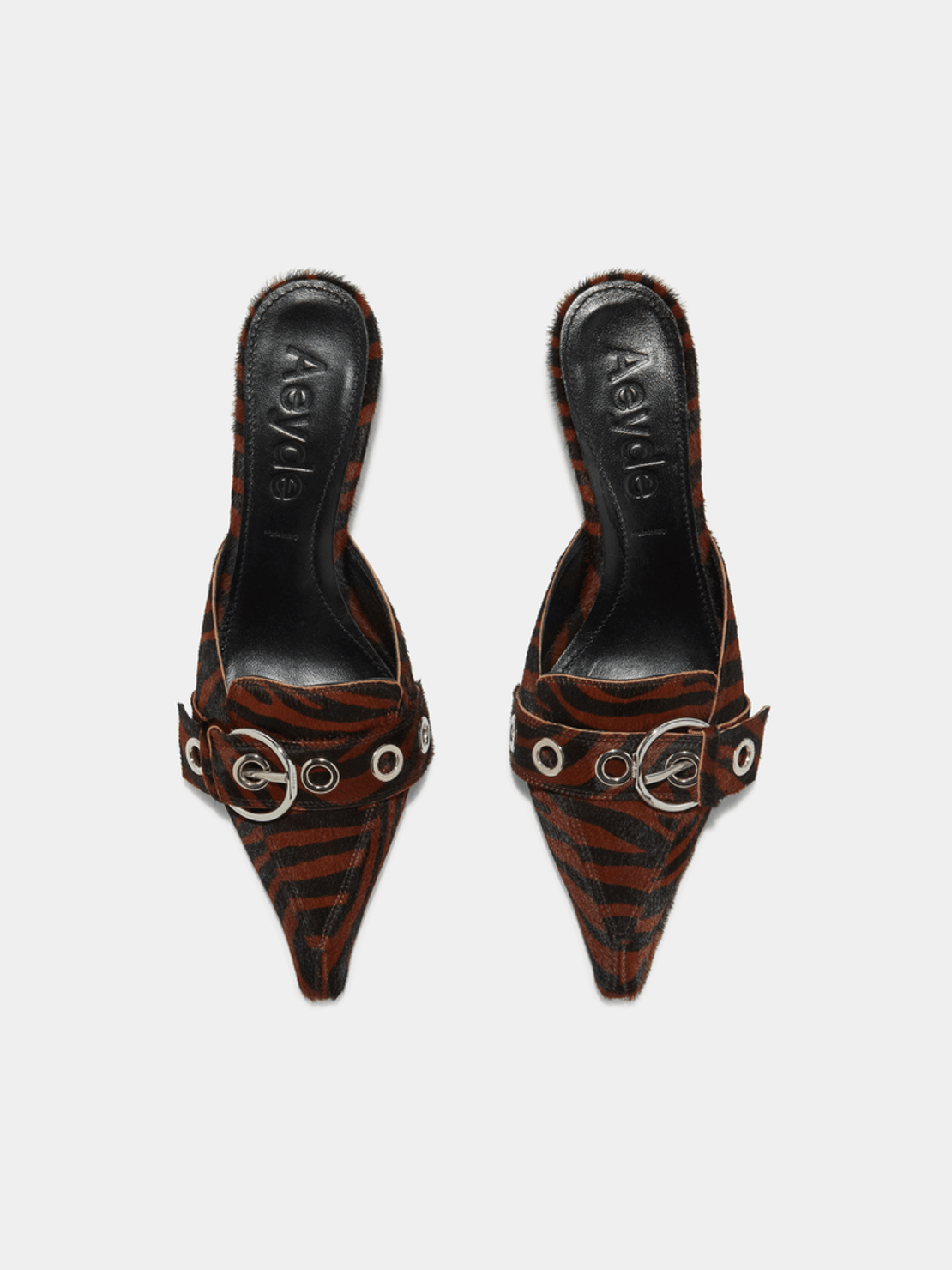 The Aeyde Danielle Ponyhair Mules are the perfect addition to your wardrobe for any occasion. The bold front buckle adds an eye-catching detail, while the pointed toe design provides a sophisticated edge. Ideal for both casual outings and more formal events, these mules pair beautifully with dresses, skirts, or tailored trousers.